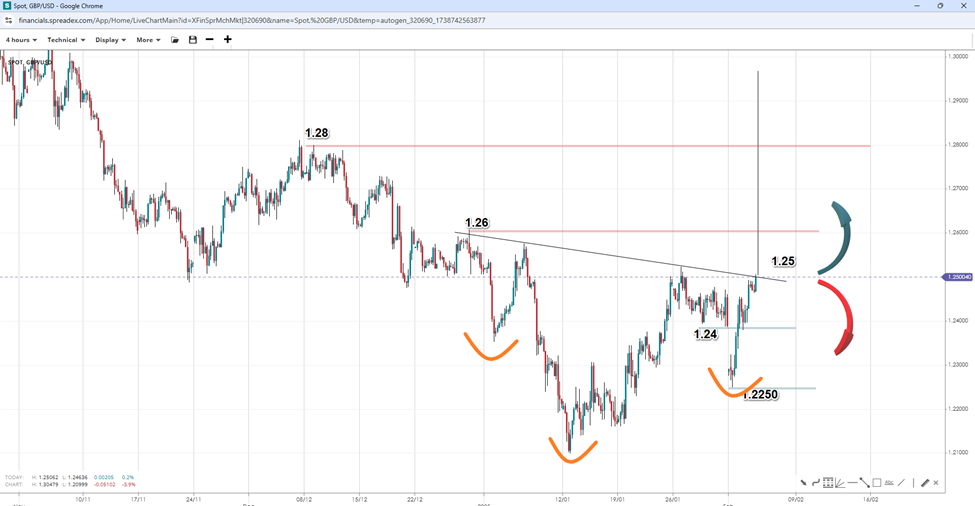 It has been weeks since the markets began expecting the resumption of rate cuts as inflation figures have moderated and economic growth has slowed. Paradoxically, this has boosted the FTSE 100 over the past month while weighing on the pound. Cable has been trending lower since November, with persistent inflationary pressures in the US contrasting with the UK's, paving the way for the BOE to catch up with the ECB.