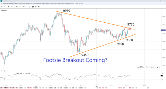 UK 100 Tests Upper Trendline of Continuation Pattern