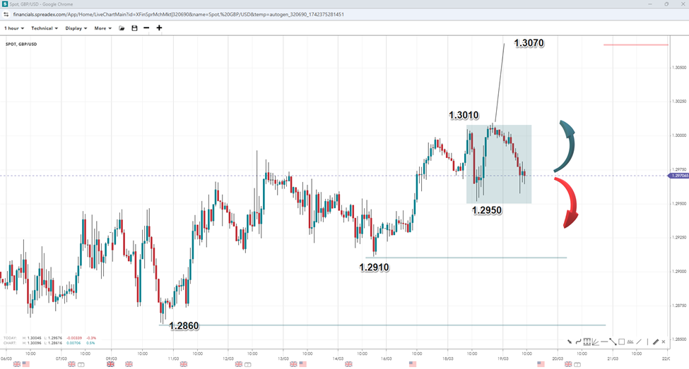 Markets will be looking for guidance on the BOE's plans for the subsequent meeting, where a rate cut is priced in, which would allow the bank to prepare markets for further easing. Economists expect that the anticipated rate cut in May will be followed by two more cuts, one in August and one in November. While the ongoing trade wars have gathered media attention, their impact on the UK economy has been relatively limited, with the country avoiding targeted tariffs and remaining largely unscathed by global tariffs on steel and aluminium. Yet, investors remain cautious about potential policy changes under Trump that could still affect the UK economy.
