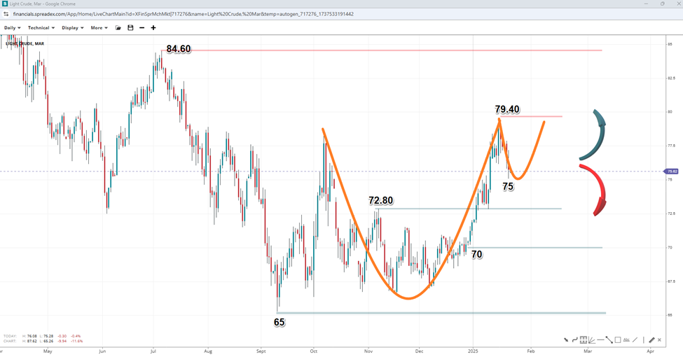 Since bottoming out in early December, crude prices have been on an upward tear, with WTI climbing near $80 per barrel in early January. Traders were concerned that supply might not meet demand, not because demand was expected to surge, but due to OPEC+ adhering to its production cuts and the outgoing Biden Administration imposing the most stringent sanctions on Russian oil exports. However, the arrival of Donald Trump in the White House appears to have halted the WTI rally even before he assumed office.