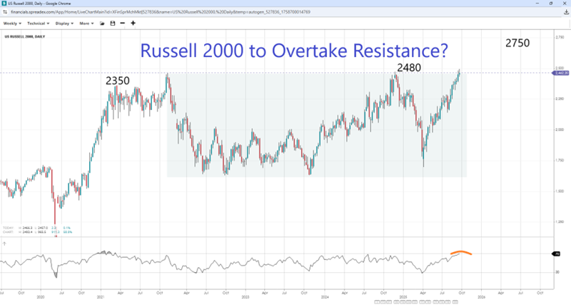 Small-cap stocks surged amid expectations of further easing from the Fed, as markets appear to be pricing in more risk appetite and searching for better valuations, but have pulled back slightly.
