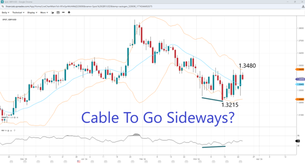 • Cable under pressure as markets price in up to two rate hikes this year if conditions in the Middle East persist.