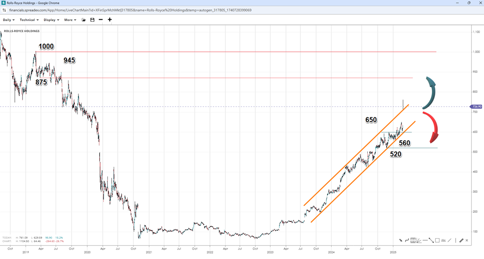 Rolls-Royce surged 15% at the market open on Thursday after reporting earnings that beat analyst forecasts. Investors cheered the company's progress in restoring profitability, improved mid-term guidance, confirmation of a dividend for the previous year (at 6p per share), and the announcement of a £1 billion share buyback programme. The cost-cutting and efficiency initiatives the company embarked on two years ago continue to pay off, and company executives have expressed confidence in further improvements, potentially supporting the upward trajectory after being among the top UK performers last year.