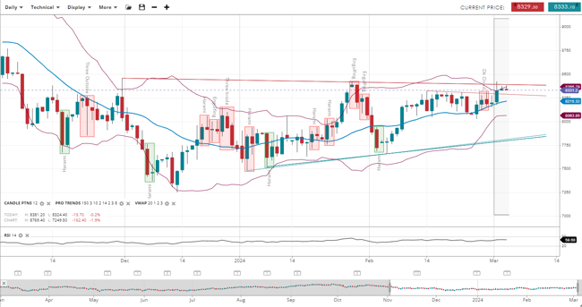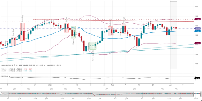 UK 100 7671.5 Neutral Consolidation 7643.4 7517.1 7769.7 52