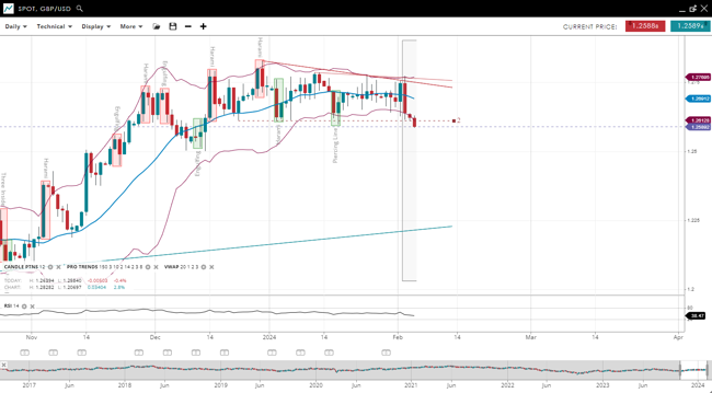 NOTE: These charts use the ‘Pro Trading Tools’ available on the SpreadEx trading platform. To use them, log in to your SpreadEx Financials Account and click ‘Technical’ from the menu on any chart.