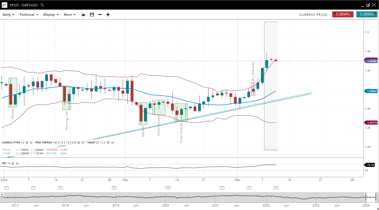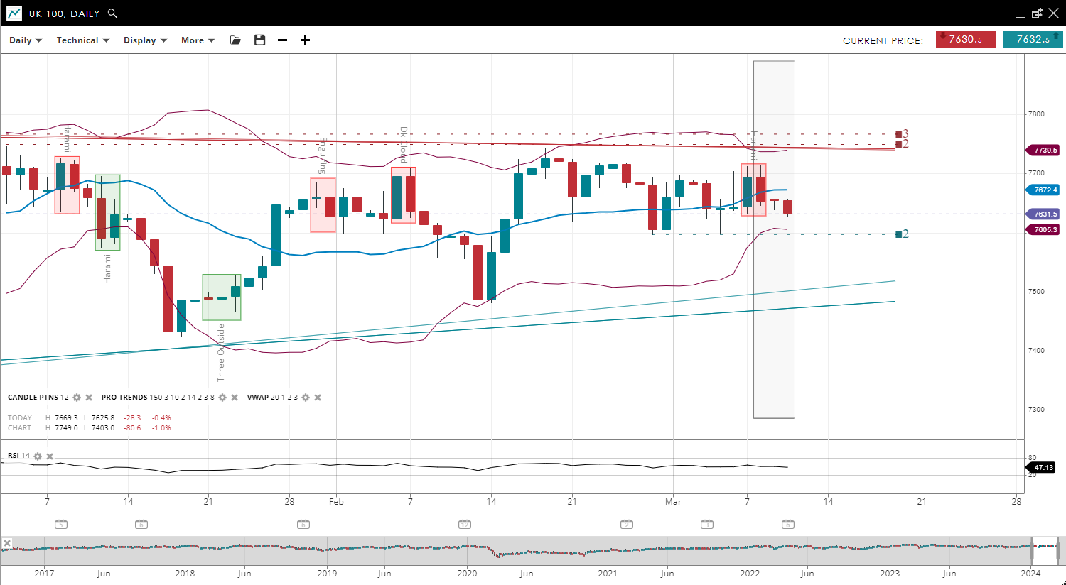 NOTE: These charts use the ‘Pro Trading Tools’ available on the SpreadEx trading platform. To use them, log in to your SpreadEx Financials Account and click ‘Technical’ from the menu on any chart.