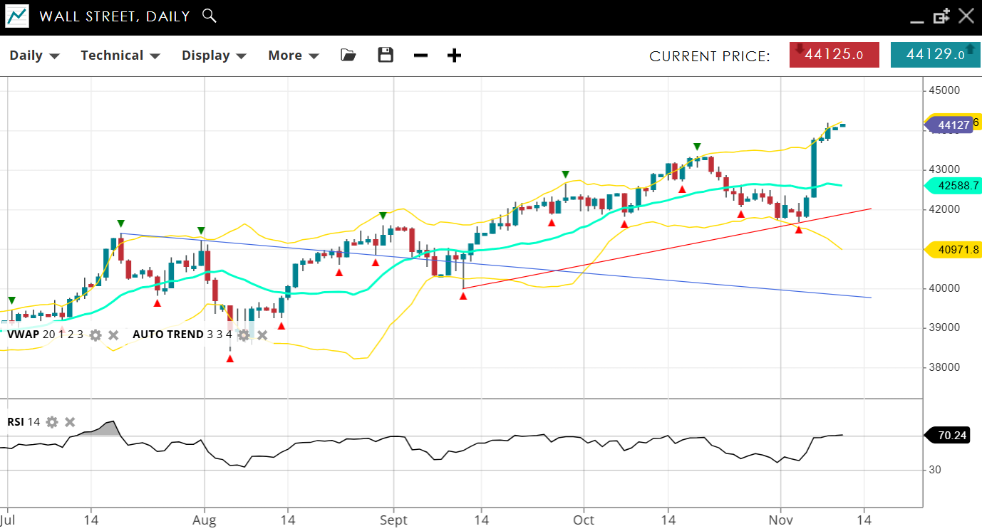 | Wall Street | Bullish | Impulsive | 44127 | 42588 | 40971 | 44120 | 70 |