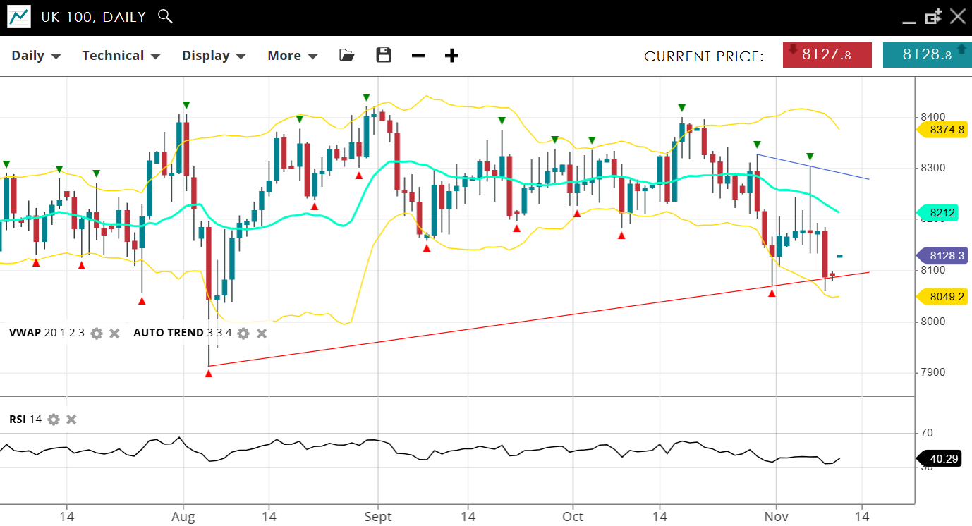| UK 100 | Neutral | Consolidation | 8128 | 8212 | 8049 | 8374 | 40 |