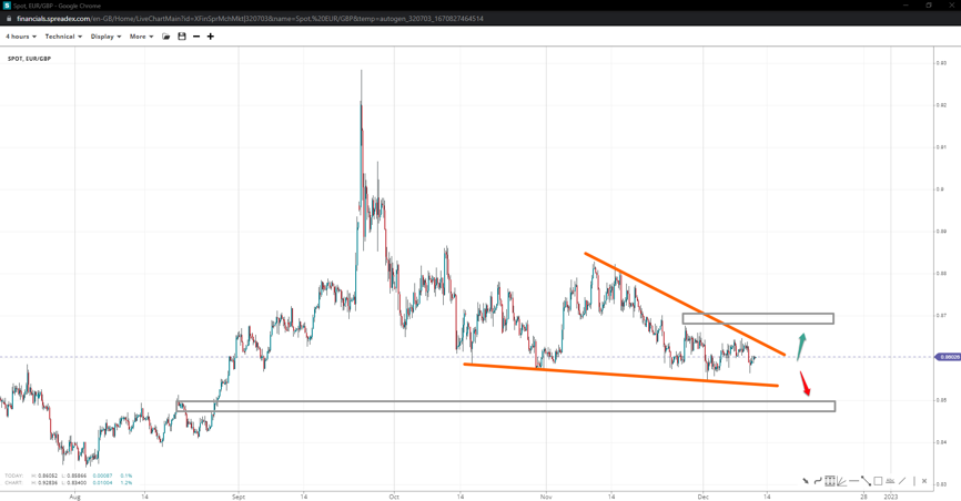 EUR/GBP might have also completed a falling wedge, or it’s in the works of doing so. If 0.8550 is revisited, it might offer a bounce towards 0.865. But it might get there without falling. Above the peak, 0.8676 and 0.87 are major resistance levels to keep an eye on. Below the biweekly support, there lies 0.85.