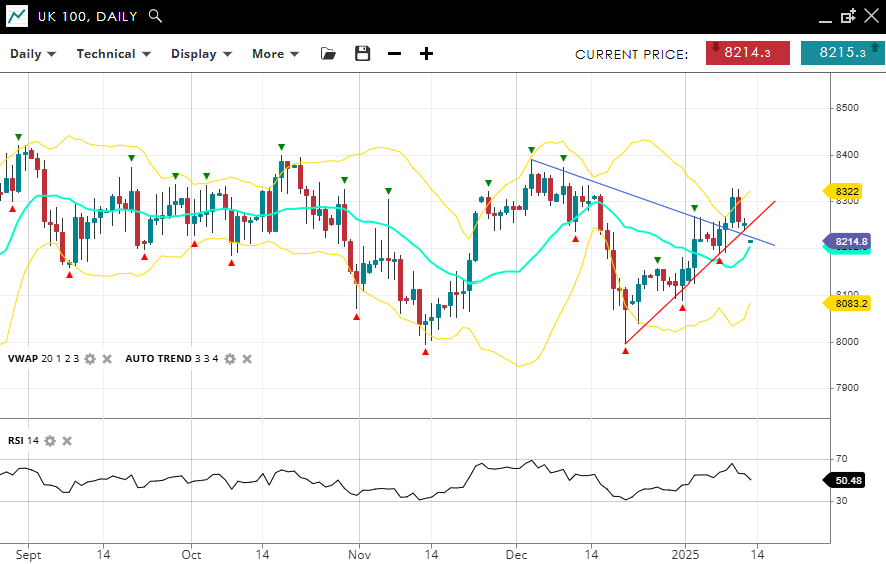 | UK 100 | Neutral | Consolidation | 8214 | 8190 | 8083 | 8322 | 50 |