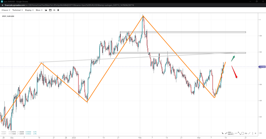 EUR/USD might have reached the neckline of a potential H&S pattern as it headed towards the right-shoulder high of 1.0736. Reversing now might see prices move back to 1.0524 and perhaps 1.0483. Conversely, a move towards 1.08 may invalidate the pattern if it enacts an extended move to 1.0928. The former can still be seen as the right-shoulder high.
