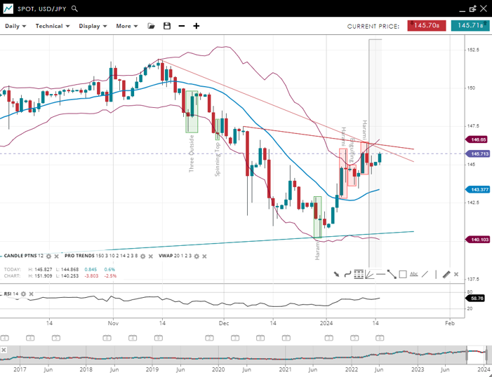 USD/JPY Bullish 143.37 140.10 146.65 58