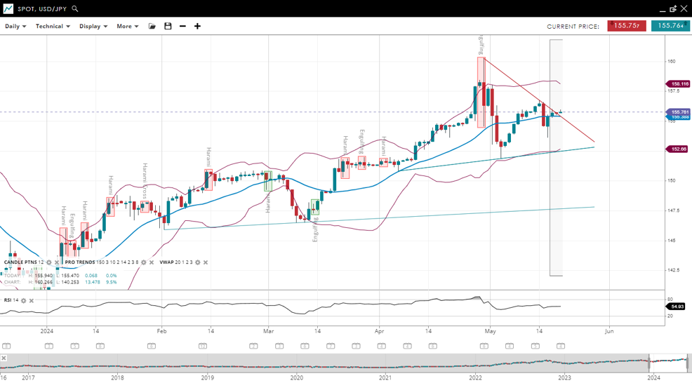 USD/JPY Neutral Consolidation 155.76 155.38 152.66 158.11 54