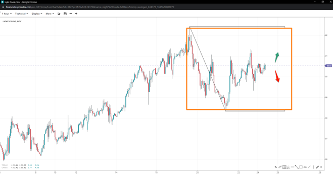 WTI’s down and upside price action appears corrective, increasing the chances of a prolonged sideways market with boundaries at $88.40 and $95.40 a barrel. The break of either level might instigate a leg equal to the range’s length of seven dollars, opening the door to triple digits in the one case and the $80/bbl handle in the other.