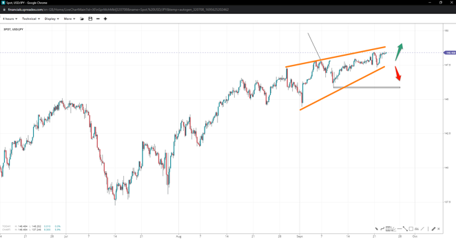 The upside price structure in USD/JPY resembles a wedge pattern, pending a potential pullback towards 145, if not a reversal. 147.31 and 145.90 are critical short-term supports to determine forward action, with the measured-move projection increasing speculation for 149.85.