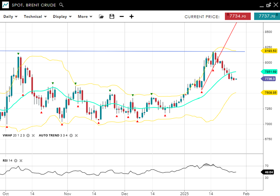 | Brent Crude | Bullish | Correction | 7736 | 7851 | 7509 | 8193 | 49 |