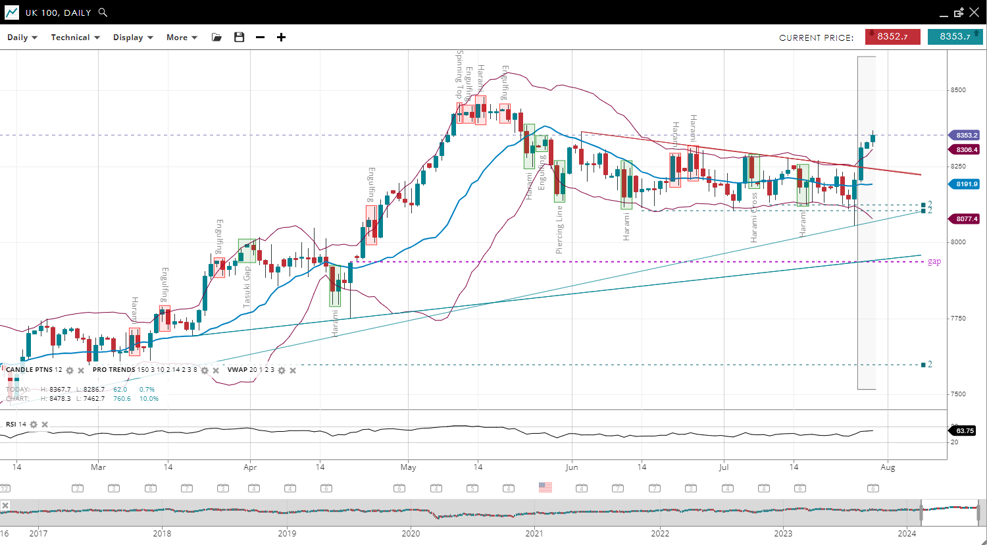 | UK 100 | Neutral | Impulsive | 8353 | 8191 | 8077 | 8306 | 63 |