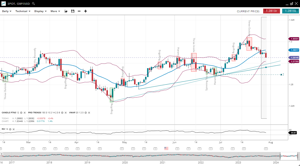 NOTE: These charts use the ‘Pro Trading Tools’ available on the SpreadEx trading platform. To use them, log in to your SpreadEx Financials Account and click ‘Technical’ from the menu on any chart.