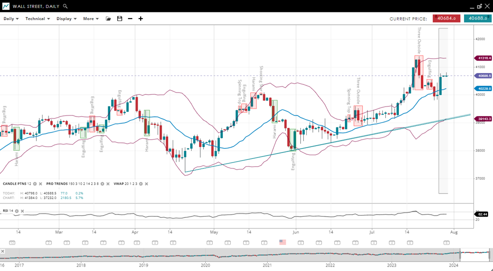 | Wall Street | Bullish | Impulsive | 40686 | 40229 | 39143 | 41316 | 62 |