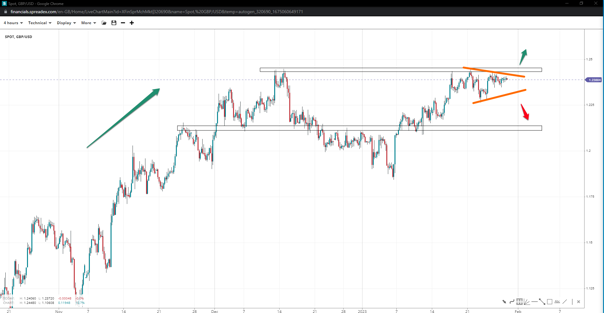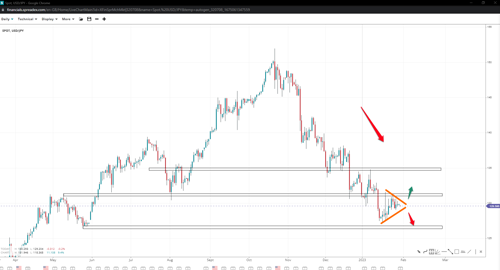 USD/JPY has met resistance enough times to presume a range is forming, but it has an upward bias due to the higher lows that it resembles a pennant and a triangle. The upper bound lies above the 130.00 handle, and the lower above 129.00. Being in a larger-term downtrend, the breakout could offer a move down to 126.35 rather than 135.00, with 131.50 invalidating the bearish leg.