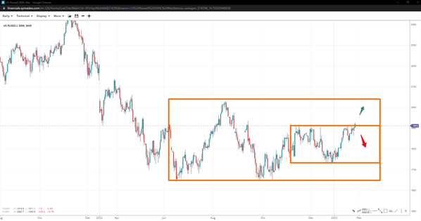 The US Russell seems stuck in short-to-medium and also medium-term range bound markets. Breaking past the top at 1910 could open the door to the 2k handle (and higher). The double top formation and the false break at 1930 could offer a short-term pullback, with weakness below 1830 exposing bulls to 1730 and reducing the chances of revisiting the 2k ceiling.