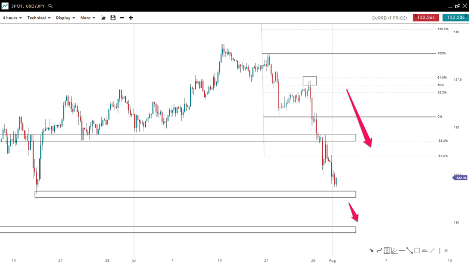 The sellers are in clear control of the price of USD/JPY where lower highs and lows have been posted. The market is about to test the 131 mark. If enough sellers rejoin the downtrend after a close below the pivot level, the price could reach the 129 mark in the coming days. However, a failure to break 131 might lead to a move higher toward the 134 mark.