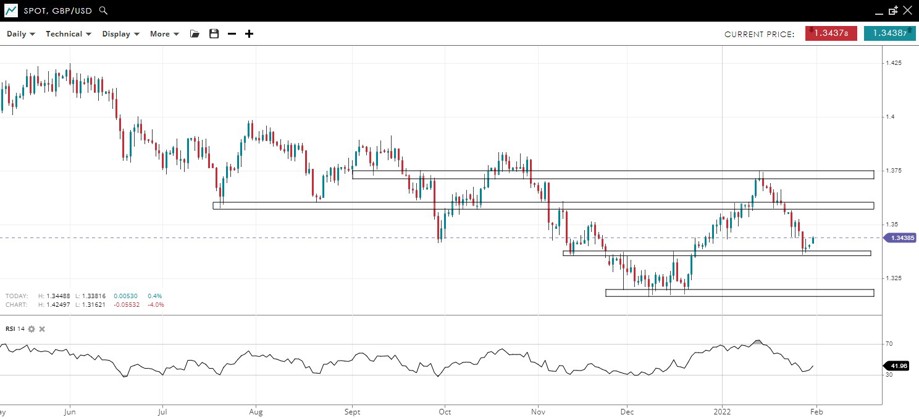 The price has continued to slide over the past week and just recently formed a base near former resistance at 1.335.
