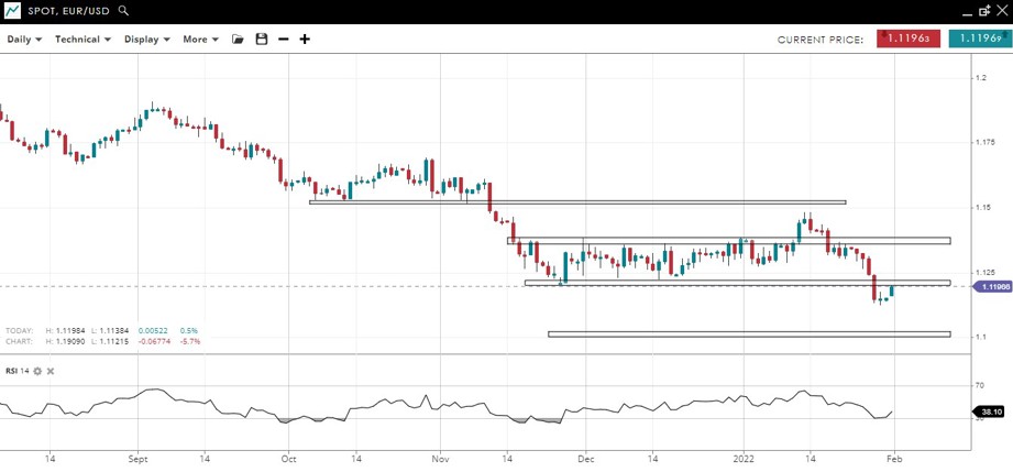 The price has dropped to a fresh 19-month low under major support at 12, meaning the round number 1.10 is next major support.