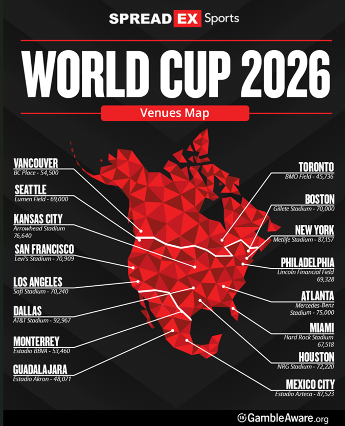 The 2026 World Cup will take place all across North America. Venues include the iconic Estadio Azteca in Mexico City, New York’s Metlife Stadium, and BC Place in Vancouver. See below for all the venues for the 2026 World Cup.