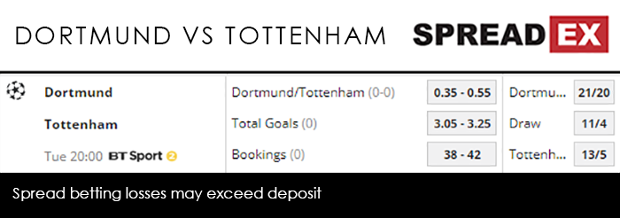 You’d have expected Tottenham to carry that confidence into the league. Instead that Champions League triumph preceded back-to-back away losses against Burnley and Chelsea, alongside a fiery 1-1 draw against Arsenal (incidentally, the first time Spurs have drawn a league game all season). That’s effectively put an end to their hopes of a dark horse title win, and leaves them looking over their shoulder for those teams that could muscle them out of the top 4. That 1st leg flop came in the middle of Dortmund’s worst period all season. Despite being at the top of the Bundesliga for the last 18 weeks, their grip on the title is slipping. They picked up just one win in February, that 3-2 victory over Bayer Leverkusen joined by draws against Eintracht Frankfurt, 1899 Hoffenheim and Nurnberg. The start of March was even worse, the month kicking off with a 2-1 loss against potential relegatees Augsburg, a defeat that allowed Bayern Munich to draw level on points. The defending champions are now only behind Dortmund due to a marginally inferior goal difference. If the hosts are to stand any chance of overturning that 3 goal deficit, then Paco Alcacer and Marco Reus are going to need to be in the finest of forms; the Spanish forward sits at a Super Mega PGM of 38-44, with his German teammate not too far behind at 36-42. Predictably Harry Kane is Spurs’ best bet, at a Super Mega PGM of 37-43. There’s every chance Dortmund will win on Tuesday; after all, they’re yet to lose a game – well, in regular time, at least – at Signal Iduna Park this season. Whether they can win by enough is another matter entirely. Spreadex are offering a Borussia Dortmund/Tottenham Goal Supremacy spread of 0.35-0.55 alongside a Total Goals spread of 3.05-3.25.