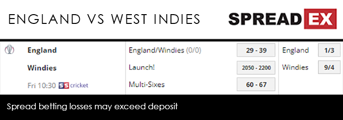 They looked set to continue that run in an easy 2nd fixture against Pakistan, a side they beat 4 consecutive times in an ODI series in May. Yet in the biggest shock of the World Cup so far, the Shaheens left England chasing 348, a tally they were unable to match, finishing the fixture 14 runs short. They did, however, bounce back in style against Bangladesh on Saturday, their 386 in Cardiff the highest team total a third of the way through the group stages. The Tigers couldn’t get close, eventually losing by 106 runs. As for the West Indies – who sit at a dark horse Outright Index spread of 16.5-20.5 – their competition has had a bit of everything. They comfortably bypassed Pakistan in their first match, winning by 7 whole wickets. Eyeing an upset in their 2nd fixture, they very nearly surprised Australia, only to fail by 15 runs at Trent Bridge. Frustratingly their tie against South Africa was rained off – a repeated issue this year, though that’s what you get for hosting it in England and Wales – leaving them on 3 points from 3 games. Jason Roy, who picked up the single highest score against Bangladesh with 153 runs, heads into the Rose Bowl at a Player Performance spread of 55-60 – where it’s 1 point per run, 10 points per catch, 20 points per wicket and 25 points per stumping. That price is behind only Jonny Bairstow, at 57-62 and Joe Root at 59-64. Though they’ve already been shown up in this tournament, the hosts should triumph on Friday, with Spreadex offering an England/West Indies Supremacy spread of 29-39, alongside a Launch! spread of 2050-2200.