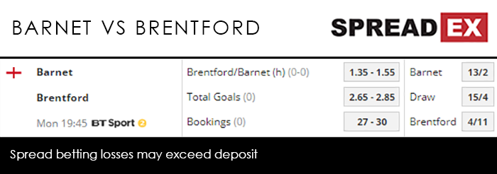 The choice to give Dean Smith the boot on October 10th proved to be a poor one. His successor, Thomas Frank, went on a truly awful run after taking the reins, winning just one of his first 10 games, with one draw and 8 losses. And though things have undoubtedly improved since mid-December, with Brentford racking up 4 wins – including a late FA Cup victory against Oxford United – and 3 draws, it appears to be too little too late. They’re now stuck in 18th place in the Championship, a fairly comfortable 11 points above the relegation zone, but 12th adrift of Derby in 6th. While their league form has been all over the place, one consistent has been Neal Maupay. He has 16 goals in the Championship, and 1 in the FA Cup, and heads into the 4th round with a promising Super Mega PGM of 59-69, well ahead of teammate Ollie Watkins at 30-36. It would appear Barnet are set for another season in the National League, 14 points off the bottom threshold of promotion-potential. They do, however, have 3 games in hand over 7th place Sutton, meaning with a bit – well, a lot – of luck they could be in with a longshot chance at the play-offs. Barnet are already old hands in this season’s FA Cup. Starting in the 4th round of qualifying, beating Braintree Town 4-2, they went on to force a replay against Bristol Rovers in the 1st round proper, winning the away fixture 2-1. In the 2nd round they then edged it over Stockport County, before stealing a 1-0 win over Sheffield United in the 3rd. That final win will give the hosts hope of claiming another Championship scalp on Monday, even if the odds are stacked against them. Spreadex are offering a Brentford/Barnet (h) Goal Supremacy spread of 1.35-1.55, alongside a Total Goals spread of 2.65-2.85.